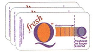 食品保鮮指示器是一種可粘貼的食品新鮮性指示標簽。它被肉類生產商、分銷商等貼在包裝好的鮮肉上,用于探測肉類產品的新鮮程度及是否變質。當標簽上的“Q”內部顏色呈現為桔黃色時,表明產品是新鮮的;隨著產品變質程度的增加,“Q”內部顏色開始由桔黃色向灰色漸變。這種標簽是由食品級的可顯示材料制成的,其成本不到肉類食品平均包裝總價格的1%,相當經濟。